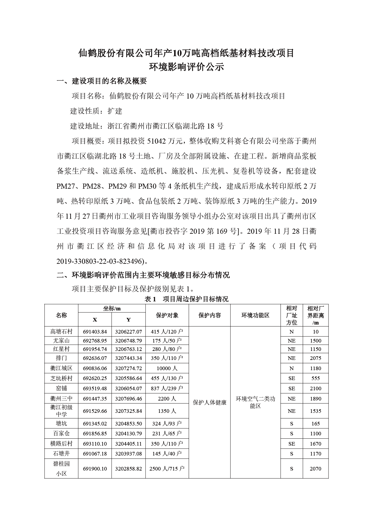 仙鶴股份有限公司年產(chǎn)10萬(wàn)噸高檔紙基材料技改項(xiàng)目公參